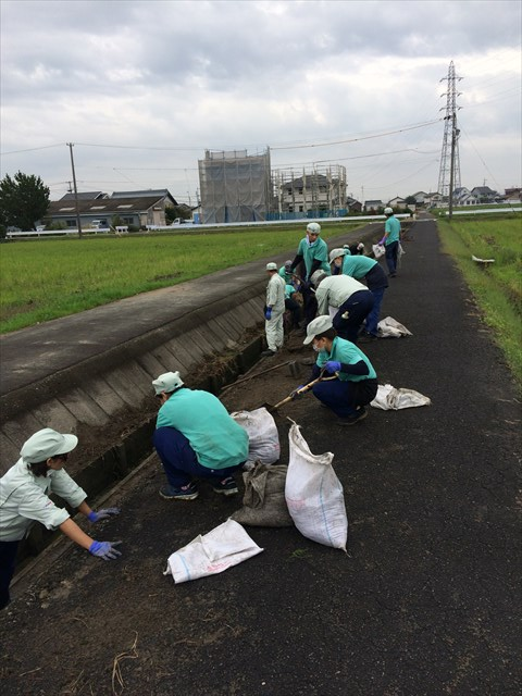 工場周辺田畑の側溝も合わせて清掃しました。