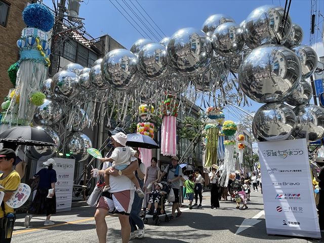 七夕祭りを一層引き立てるミラーボールゲートです。